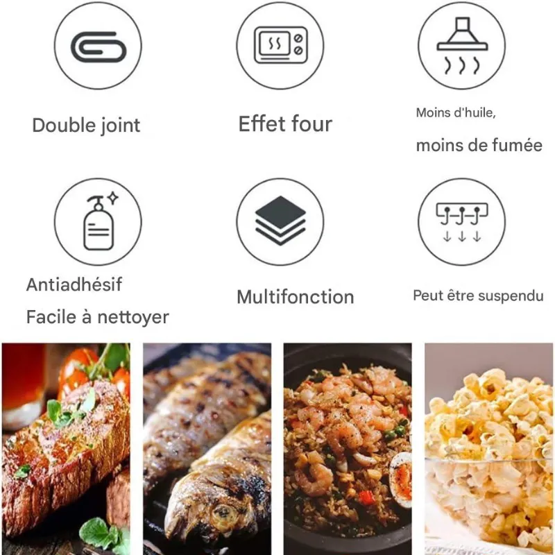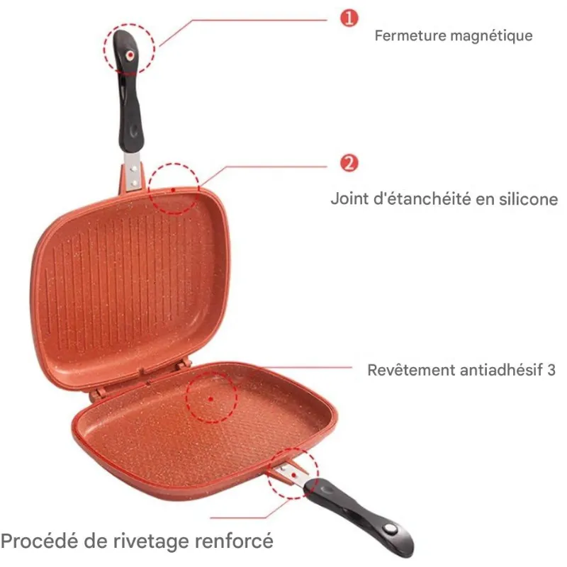 -Double face pour griller, cuire ou rôtir facilement.